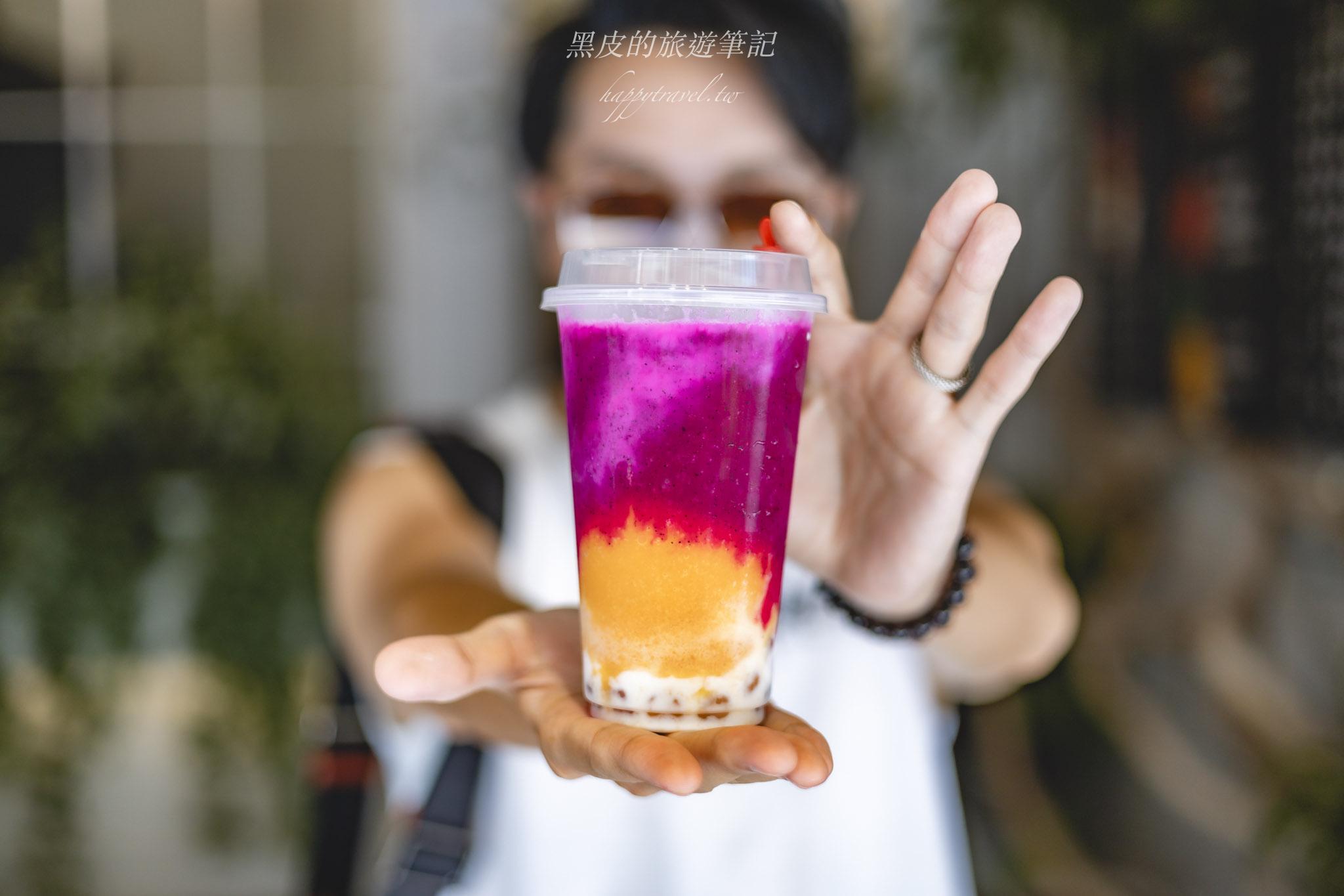 這杯水果珍奶,基底選用當季現採的火龍果與木鱉果打成冰沙,再加進酸甜清香的鳳梨,最後倒入台東在地初鹿鮮奶,鋪上手工製作、無添加香料的水果珍珠。每一顆珍珠都是老闆用地瓜粉混合新鮮果泥慢慢搓揉,咬起來帶著水果香甜,軟Q又帶點嚼勁,比一般黑糖珍珠多了一份清爽與驚喜。